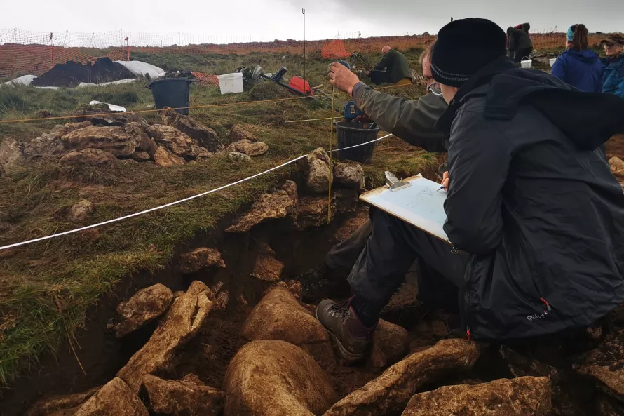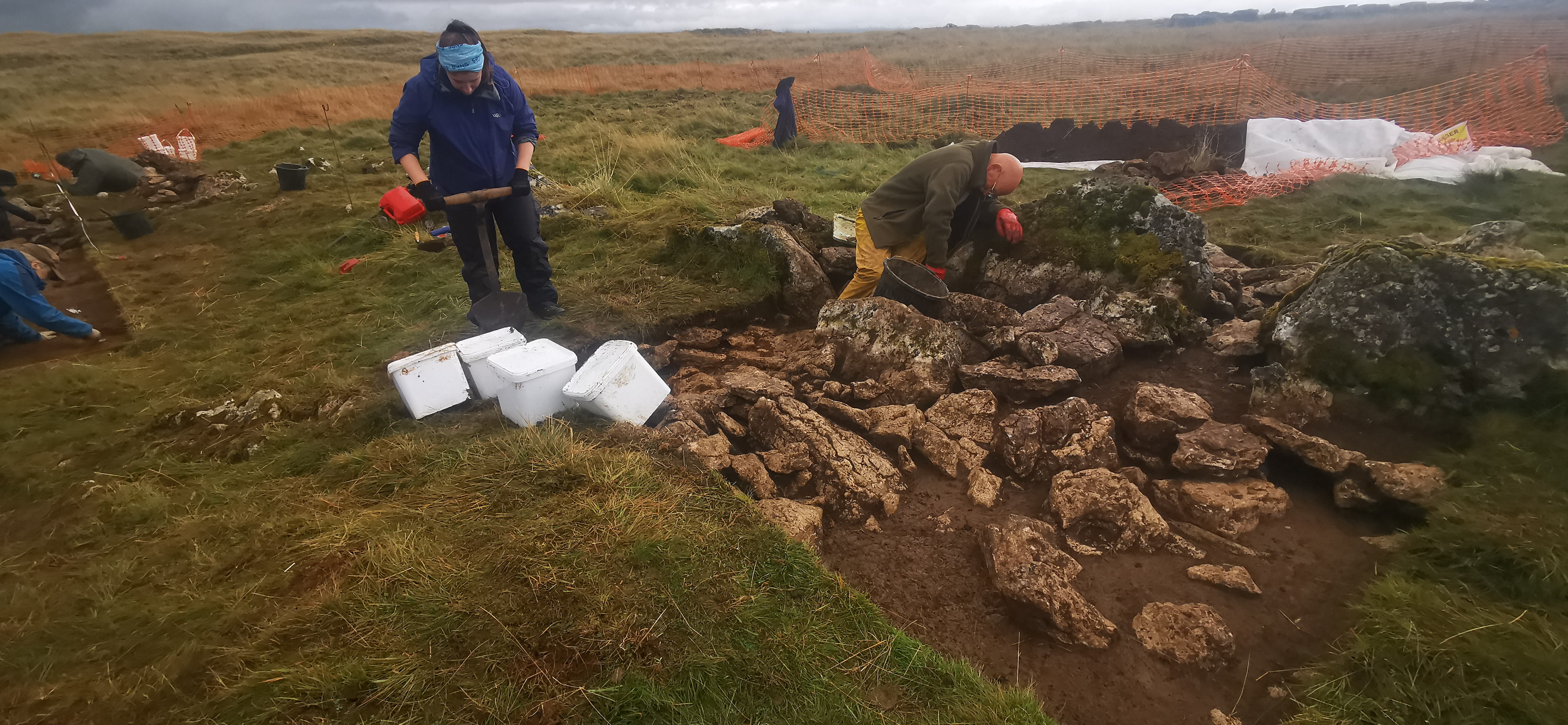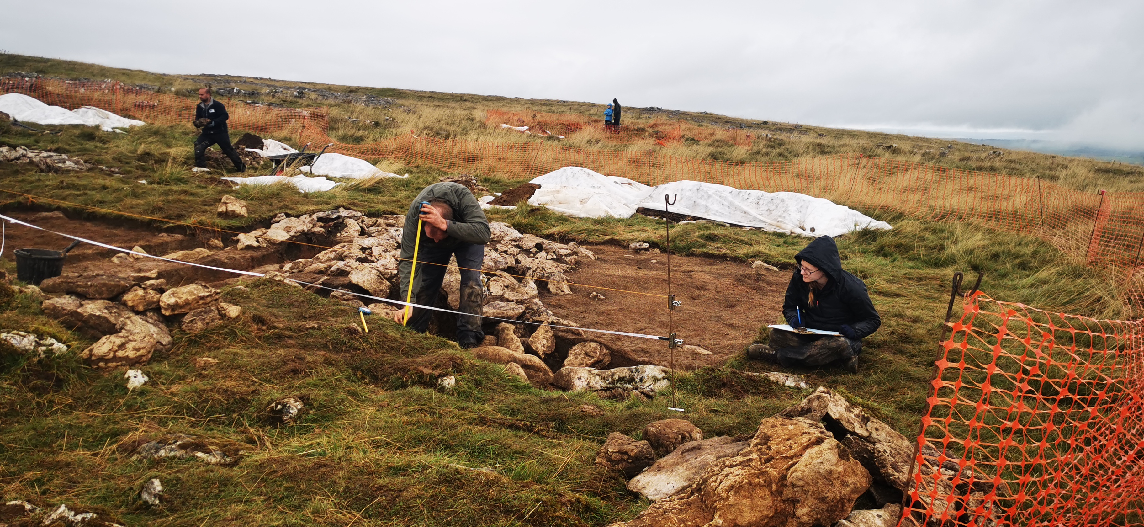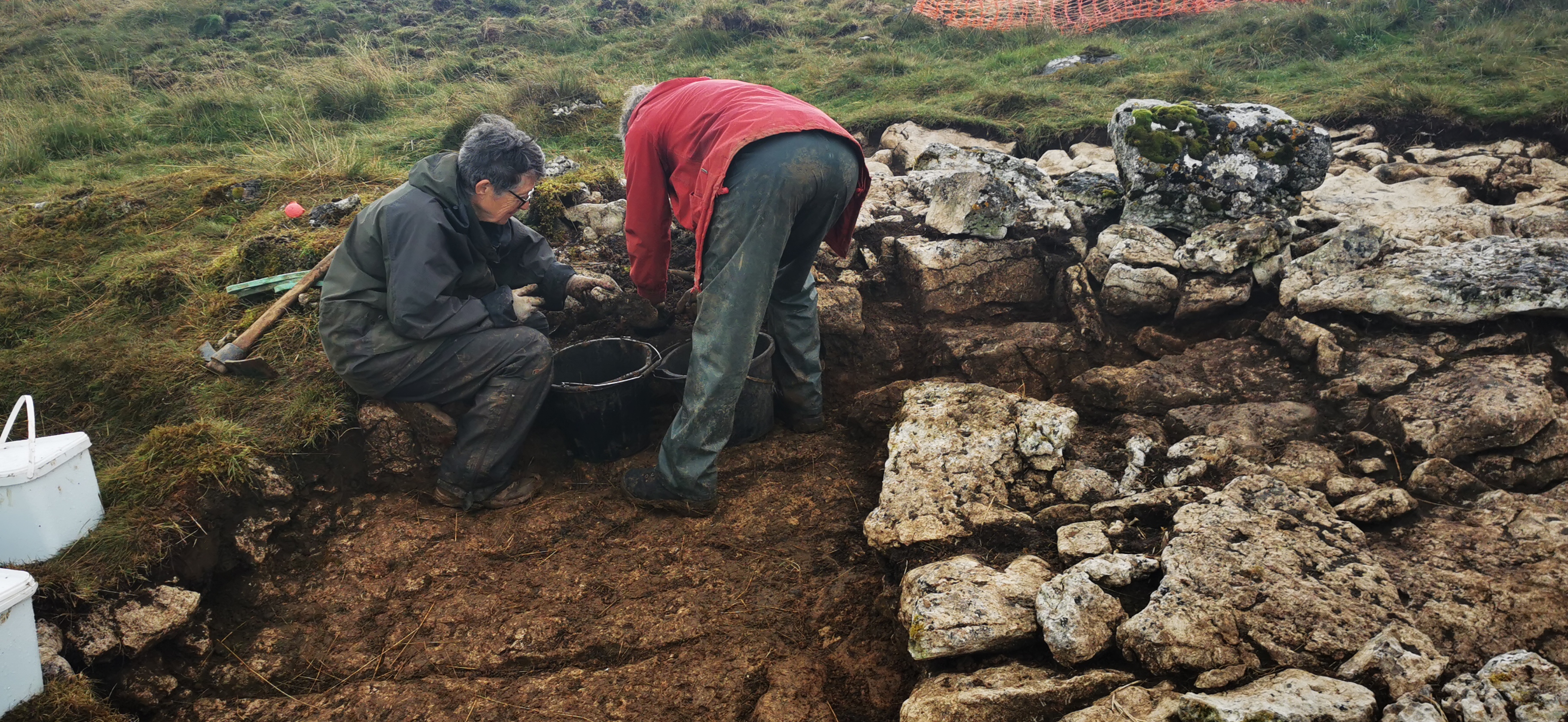 Once Rebecca and James had finished the photogrammetry they then moved onto the recording of the north-west facing section within the north-eastern end of the longhouse. Part of the longhouse wall was removed here to see if there was any evidence of a construction cut. There was a possible suggestion of a cut visible on the south-west side but no evidence on the north-east side.