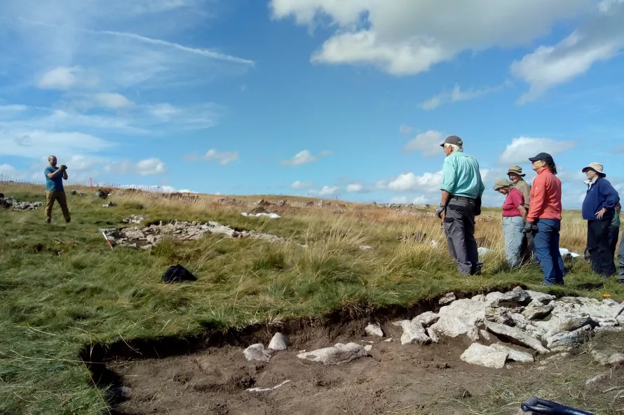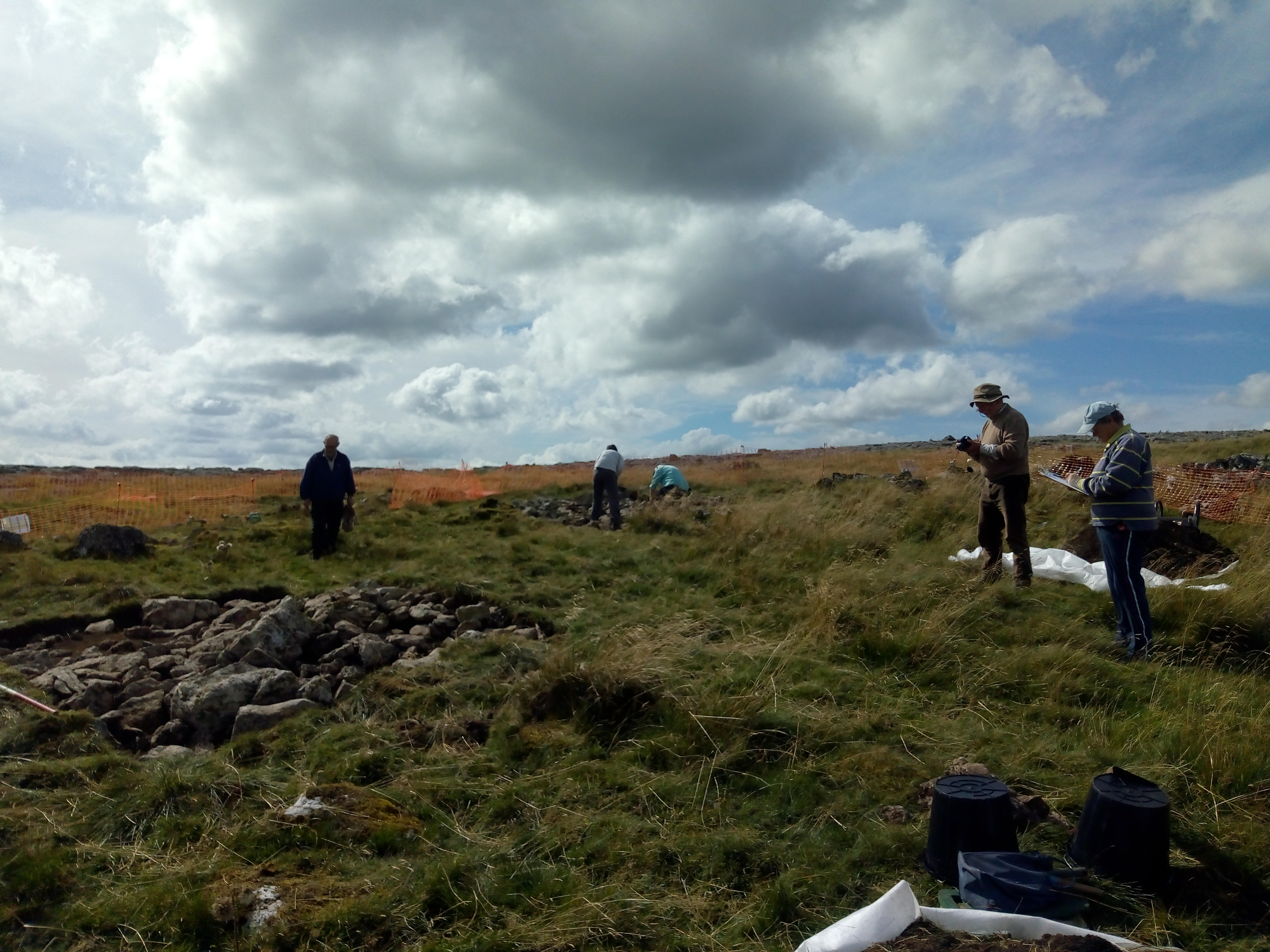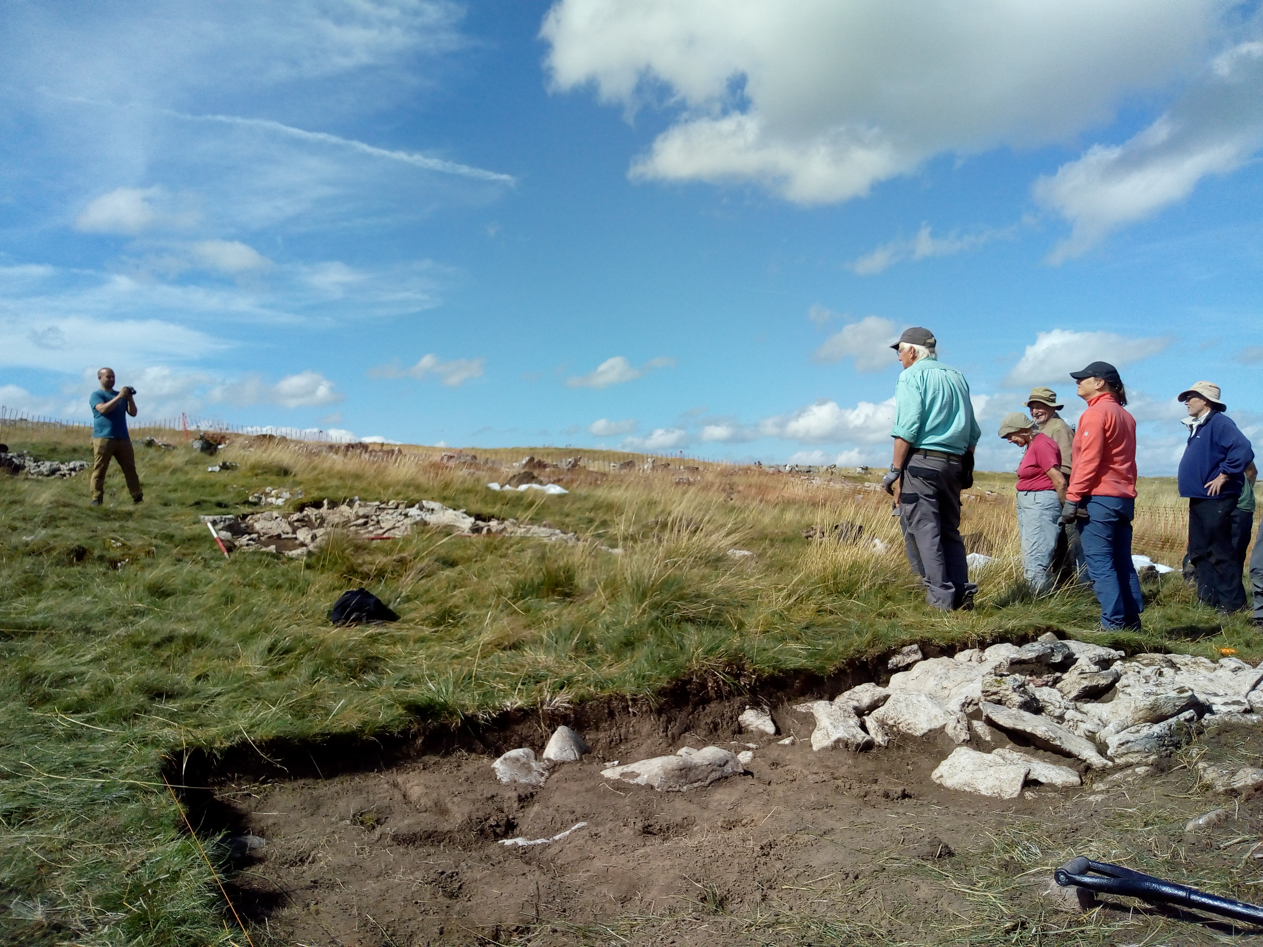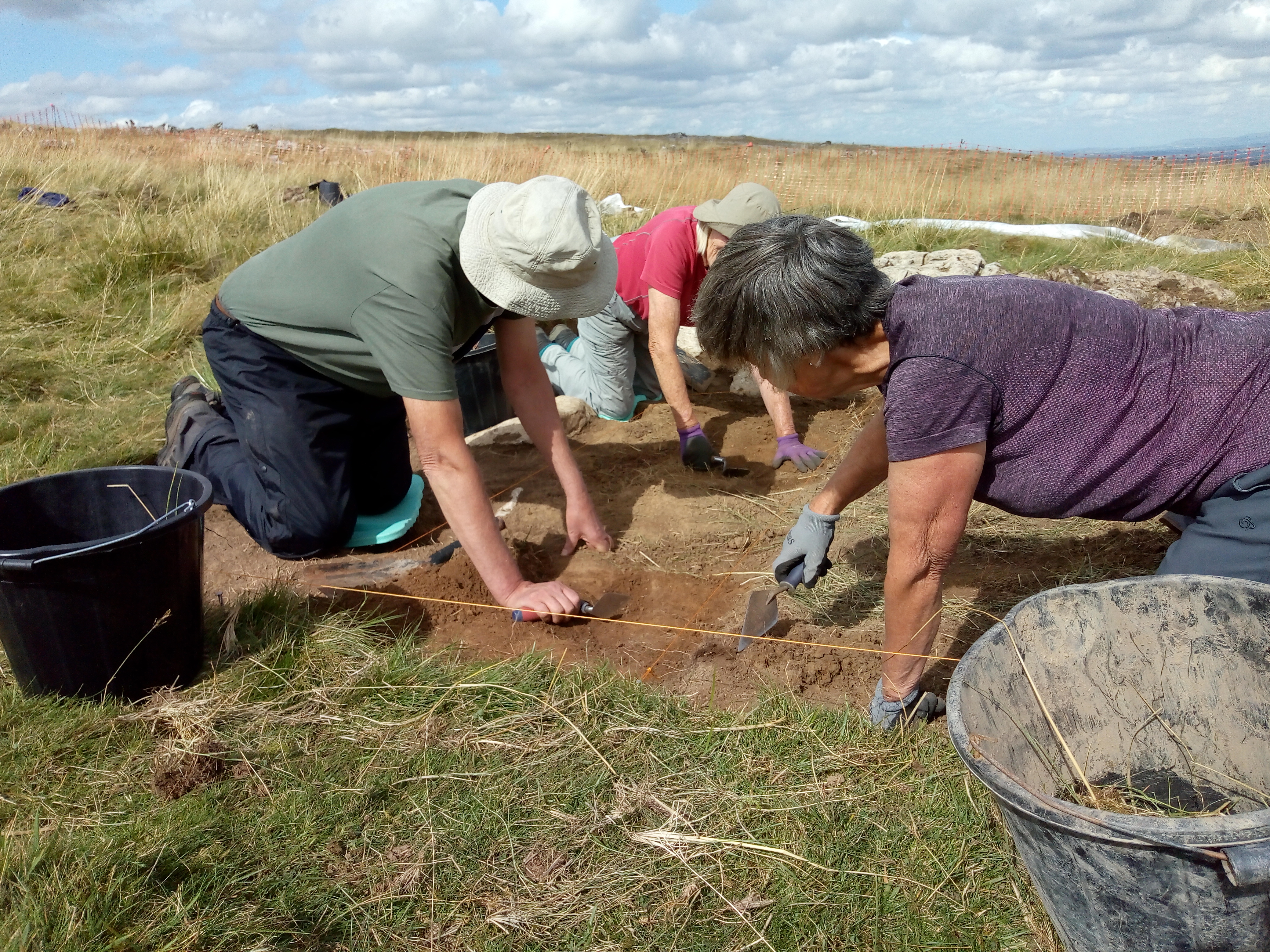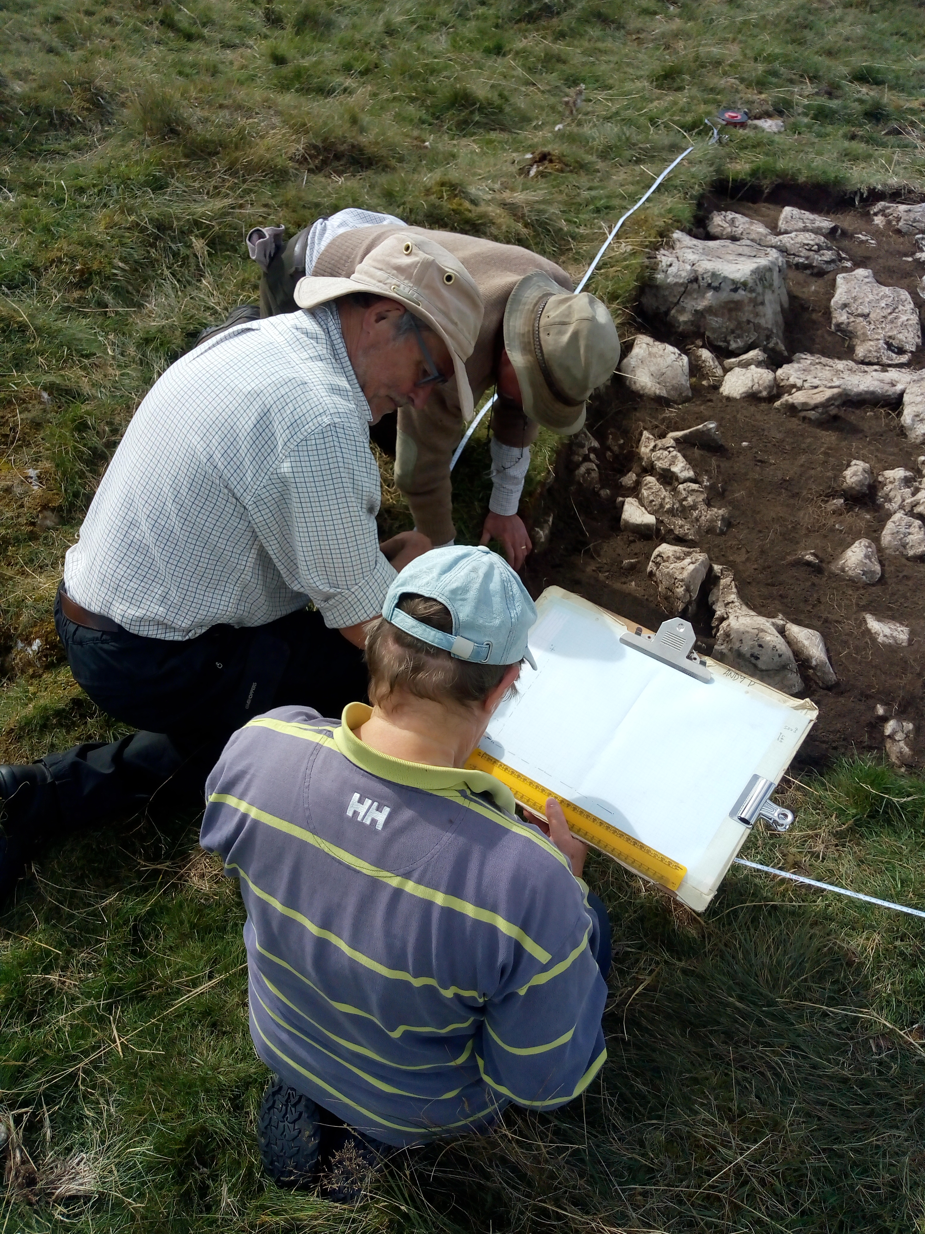 Meanwhile in Trench C, Simon was joined by Unity and Linda and they set to work on extending the trench which initially contained a portion of the northern wall and now extends over the entire corner of the structure. Unity and Simon then set to work putting a slot through the deposits which survive on the interior, a rarity in this land of limestone pavement! This will hopefully reveal some surviving surface within the building with which we can date the structure or maybe even discover some artefacts which have survived the erosion.