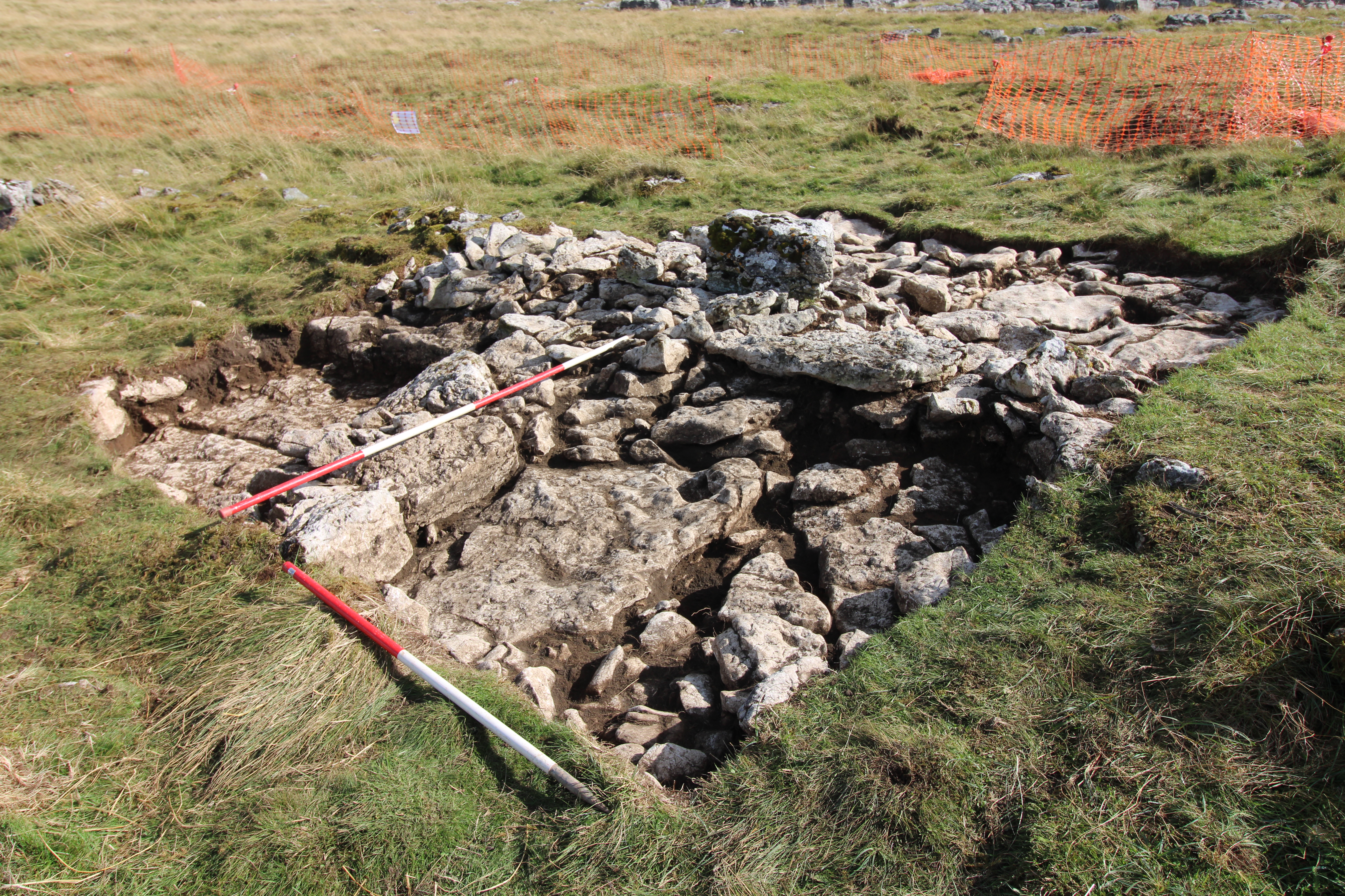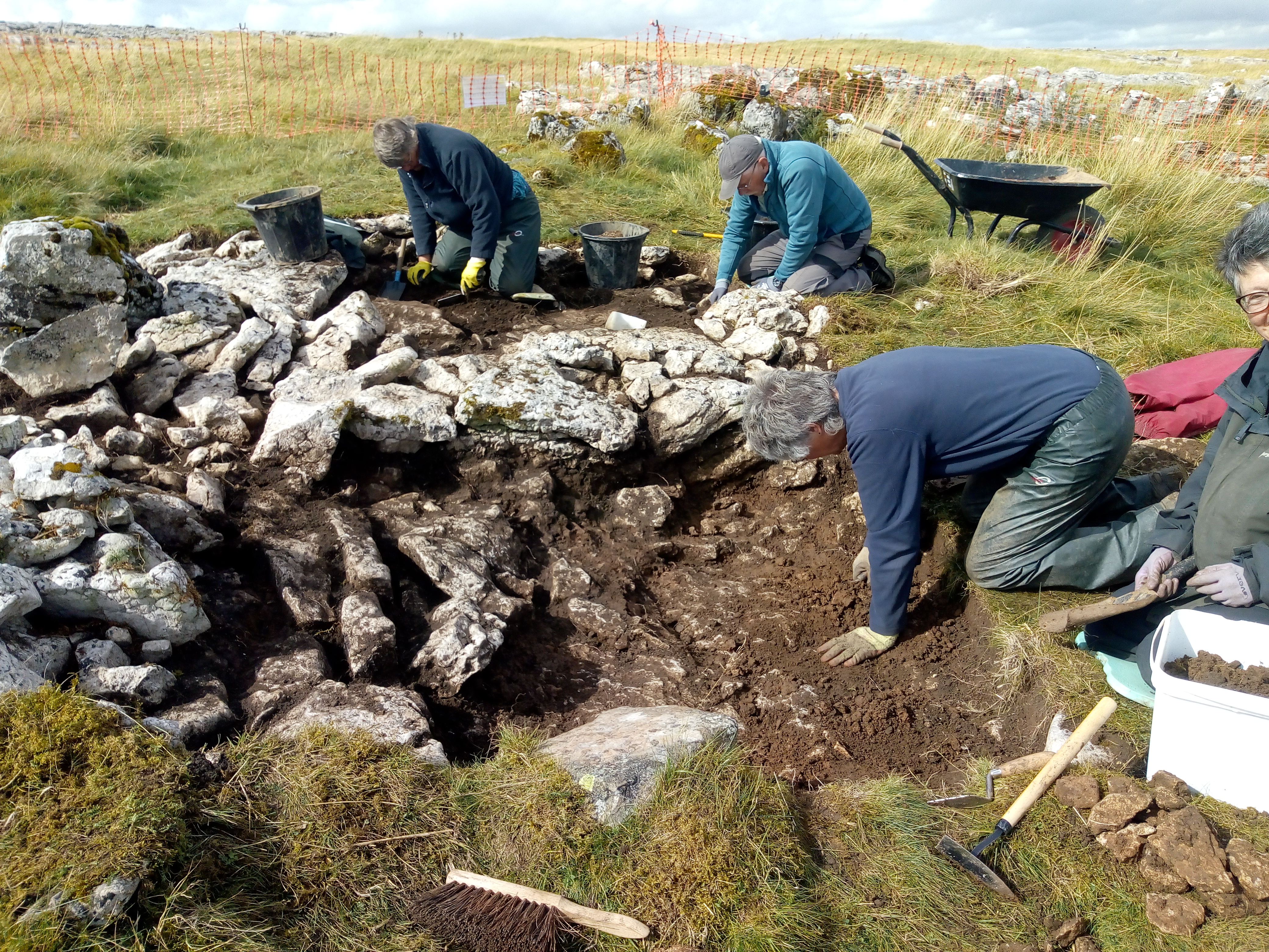 The de-turfing in trench C was completed at the end of the previous day and Unity, was joined today by Andrew, returning from season 1 to help with the excavation of the sondage within the interior of the byre end.
