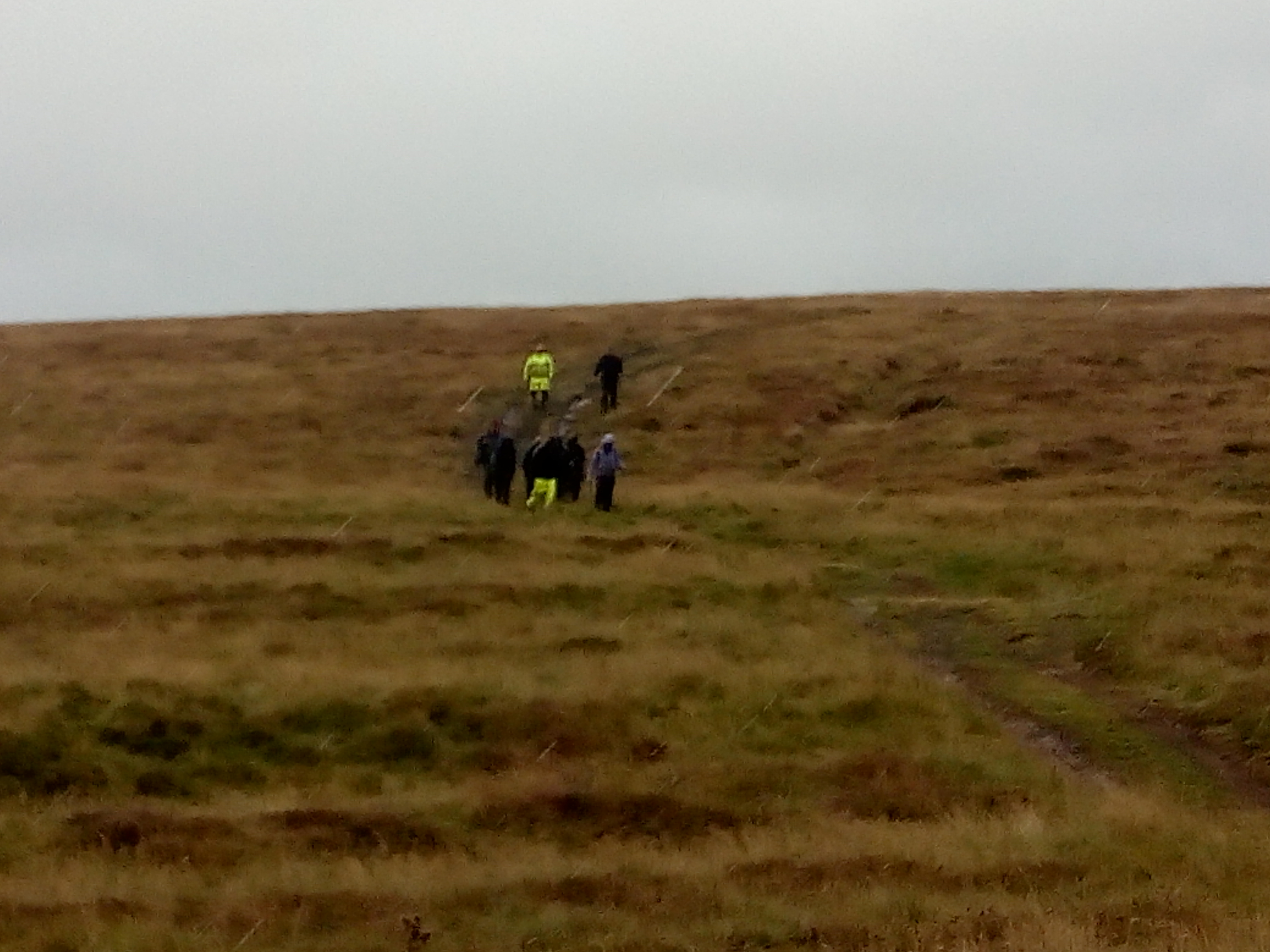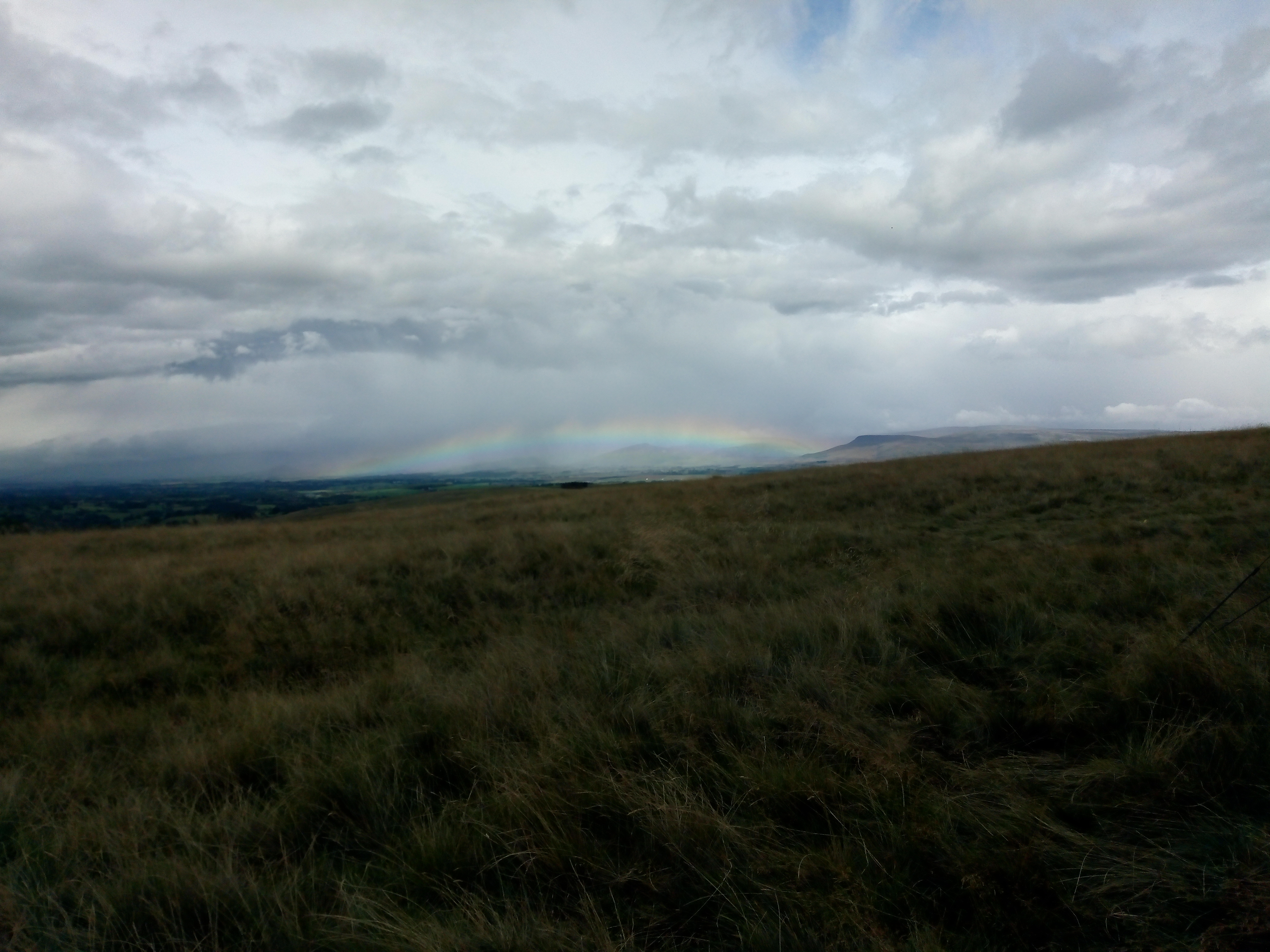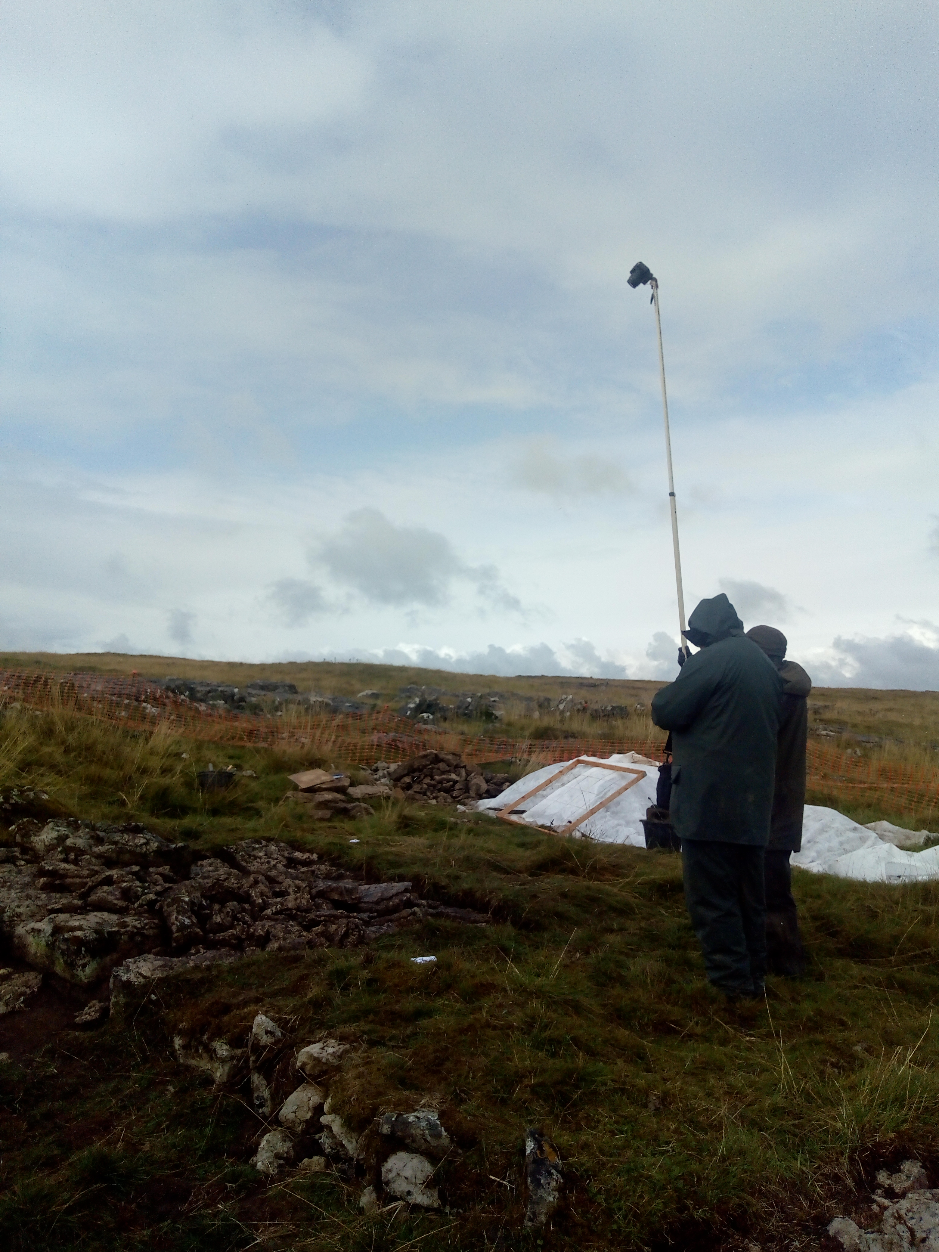 As you may have noticed from some of the photos being posted there are some quite incredible panoramic views from our site on Scar Grange. When the weather is right you can see for miles and after a wet start a drier period made us think perhaps the forecast had got it wrong today. At lunch we were treated to an impressive low rainbow from the north, but of course where there is a rainbow there must be rain and a persistent deluge eventually made us retreat to the tents and then down the hill.