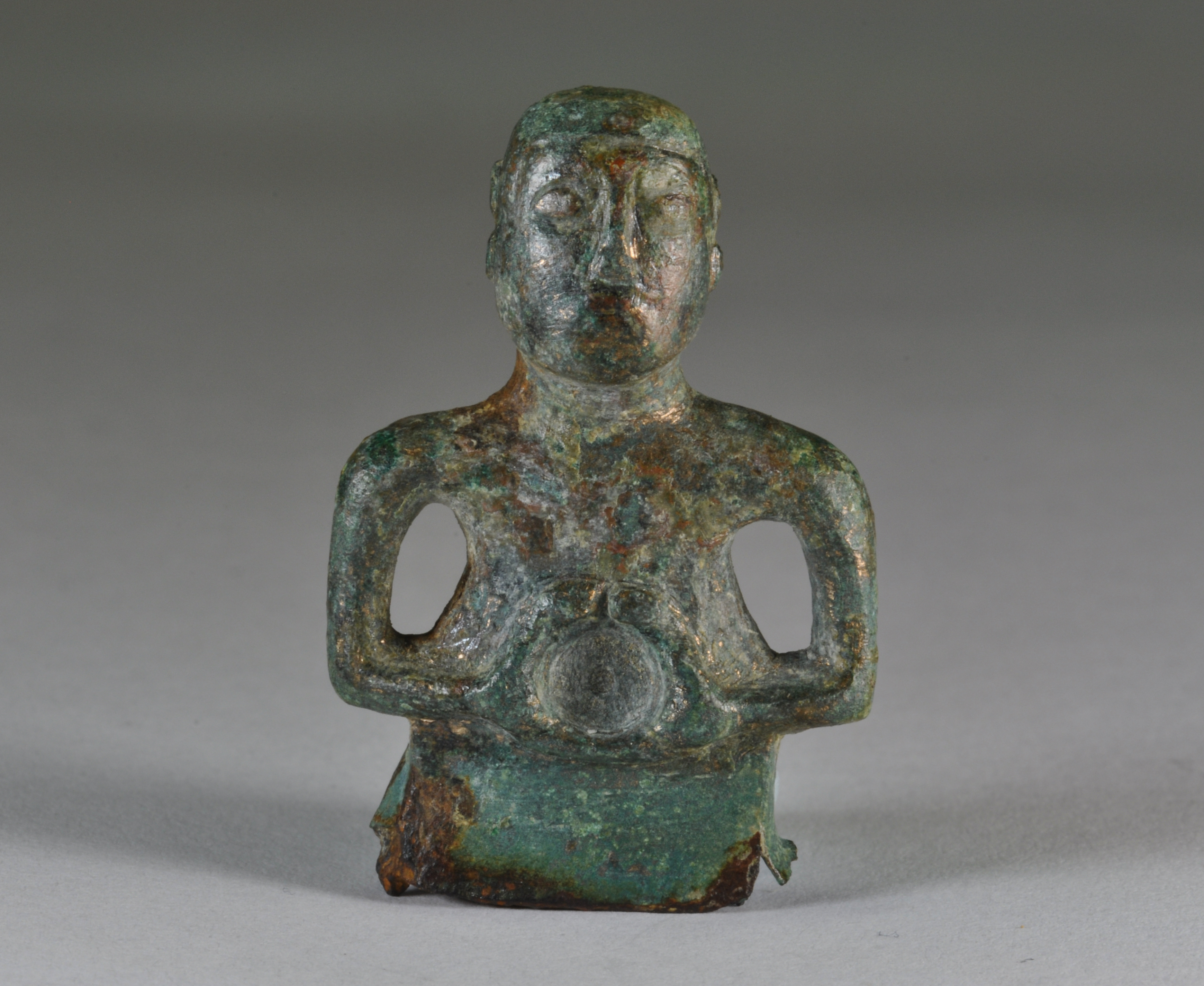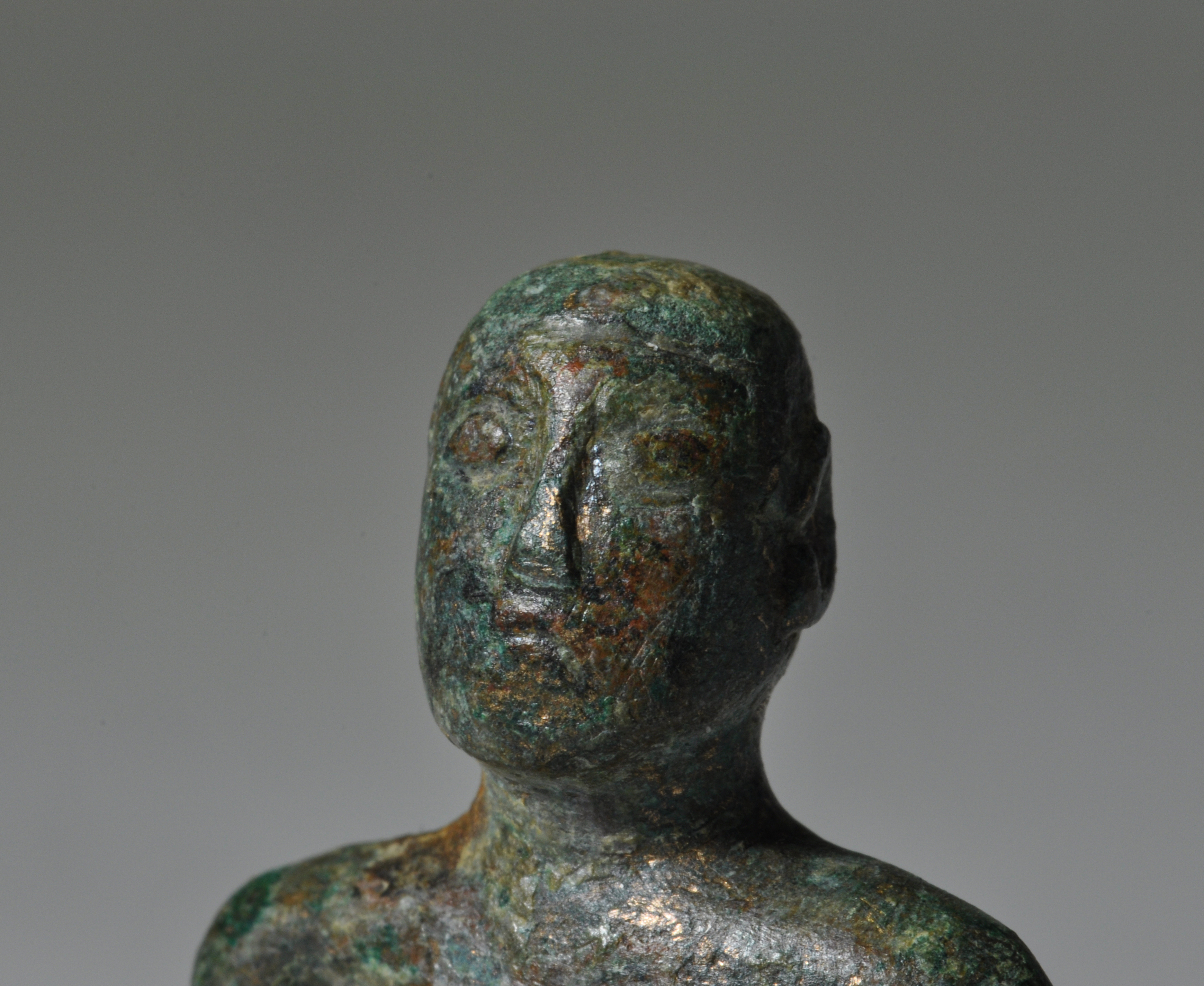 The figure probably originally served as the handle of a spatula, perhaps used to mix medicines, or wax to make writing tablets.
